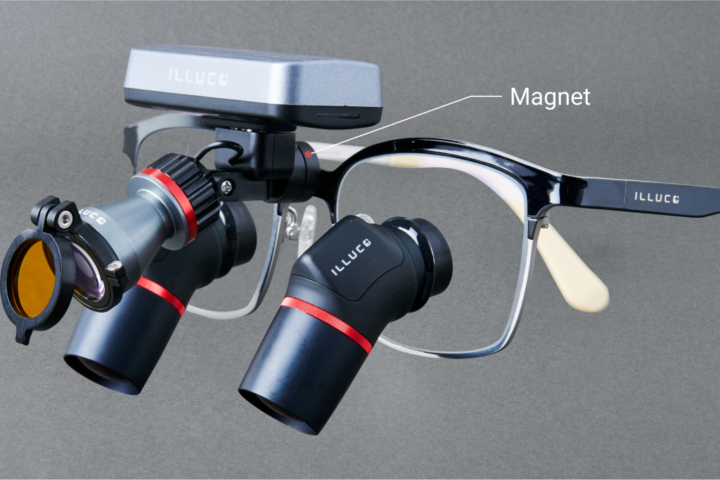 The ILLUCO wireless light is free from the limitations of wired devices and features a touch-activated system, making it extremely easy to operate and use. It can be mounted on loupes, allowing for quick and efficient treatment of patients.